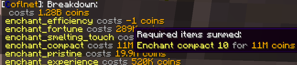 ➡️ Added /cofl craftbreakdown as suggested by @..........… It breaks down the FullCraftCost by attribute (and base itemPrice)
