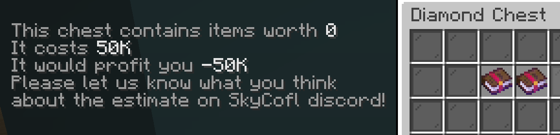 ➡️ Added Dungeon Chest profit info display. It shows you the value and expected profit from purchasing a dungeon chest based on actual sales instead of lbin. It currently only works on the forge 1.8.9 1.7.x mod version.
