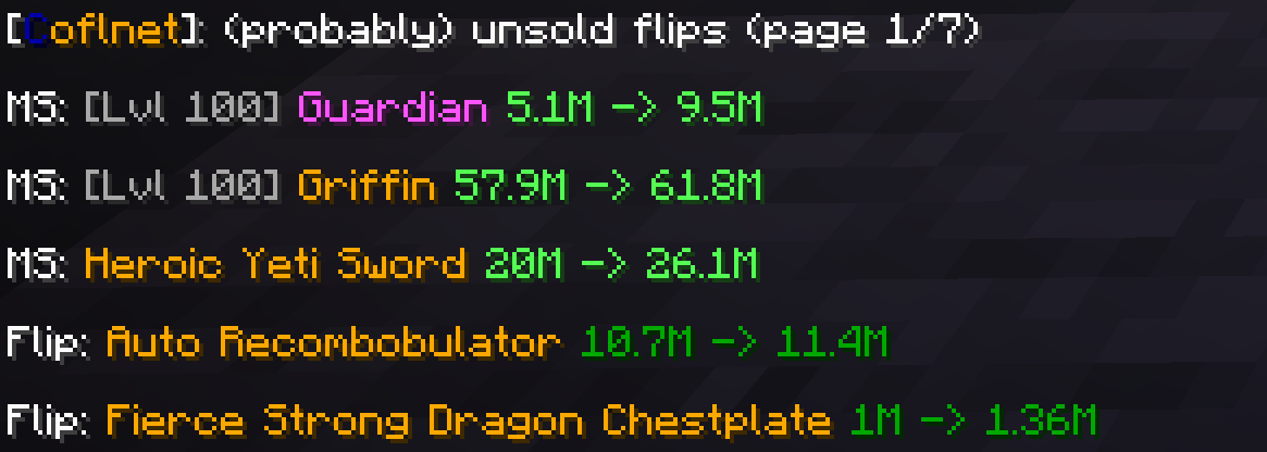 ➡️ Added /cofl ahflips to list (probably) unsold flips that nobody bought yet. They are sorted by estimated profit per hour.